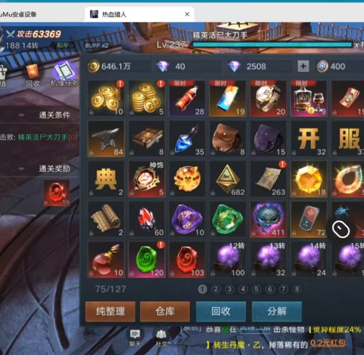 类传奇游戏,能电脑模拟器玩,不充钱也能消磨消磨时间,目前内测,有不少bug#热血猎人