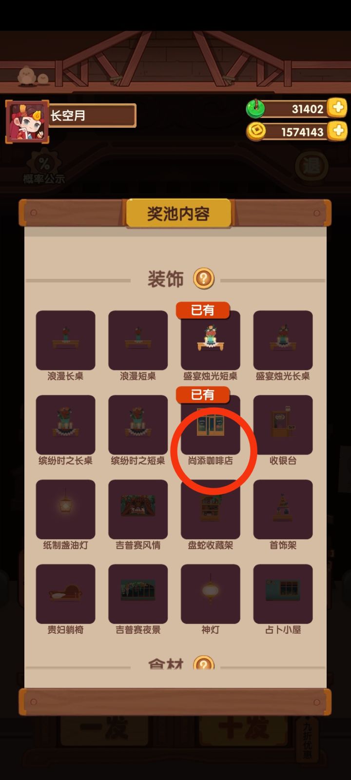 图一是尚添池,图二是二周年池,我抽到那个尚添咖啡店时还以为我点到尚添池了呢 结果退出去一看是二周年池,没错啊,难道二周年的时候就想好七周年的名字啦,我猜的#爆炒江湖 #爆炒江湖七周年