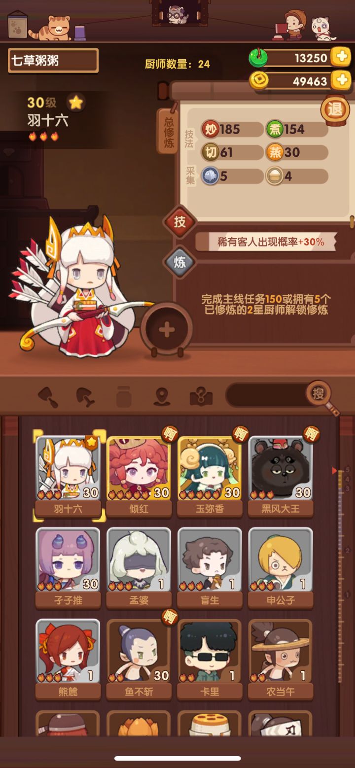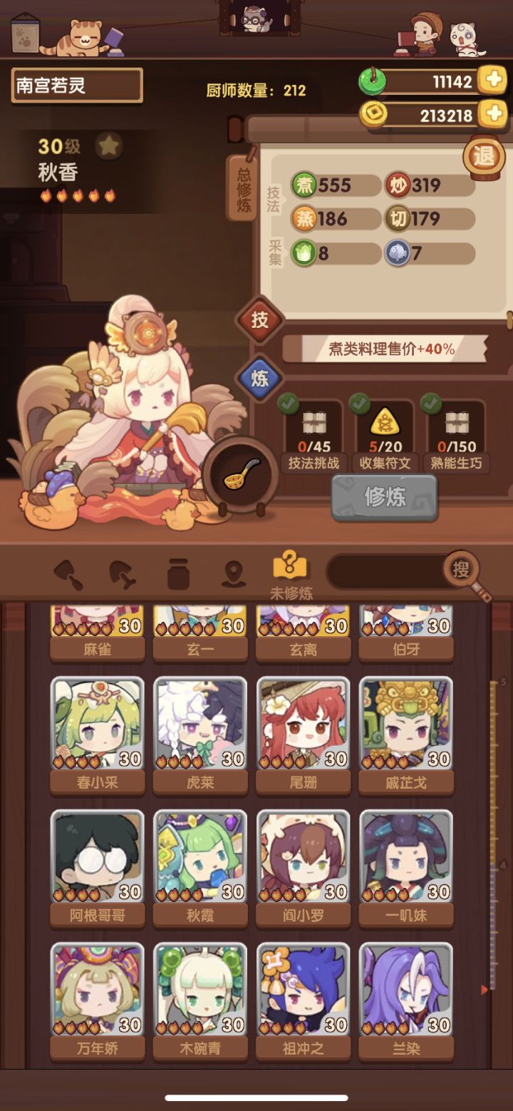 今晚梳理了一下仓库里面没修炼的厨师,算了下离全修炼还缺523个金符文,其中煮鳖和炒果需求量最大。。这还没算后厨的。。之前退坑的时候宴会刚出来,厨神都可以高保所以没有追求,结果现在宴会做不满捂脸哭好好排列了一下优先级。。慢慢来吧捂脸哭本来想要不要氪飞星,下次吧捂脸哭先把凯蒂猫修了再说 #爆炒江湖 #爆炒江湖厨师