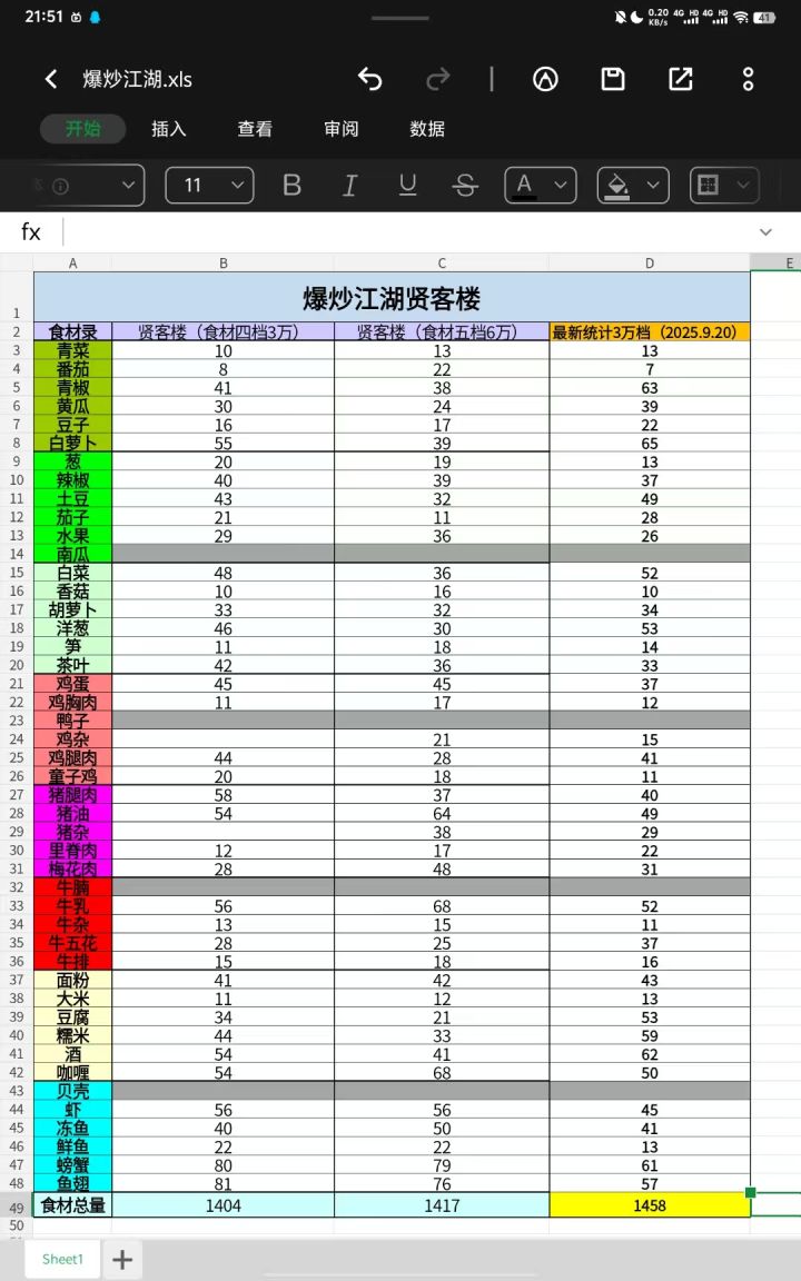 #贤客楼#刷食材#爆炒江湖 #爆炒江湖主题音乐 #爆炒江湖厨神 #爆炒江湖厨具 #爆炒江湖风云宴 #爆炒江湖七周年快乐 #星云密轨 声明:本人萌新一直好奇贤客楼3万档和6万档的食材量是否差距很大,结果自己统计发现,不仅相差不多,而且3万档有时候还会高于6万档!于是论坛也看了一下,确实是这样,然后我就开始了想着有没有自己的最优做法解法,经过一周的尝试得出来了,鼓掌👏🏻好累😫我用的是新出的采集
