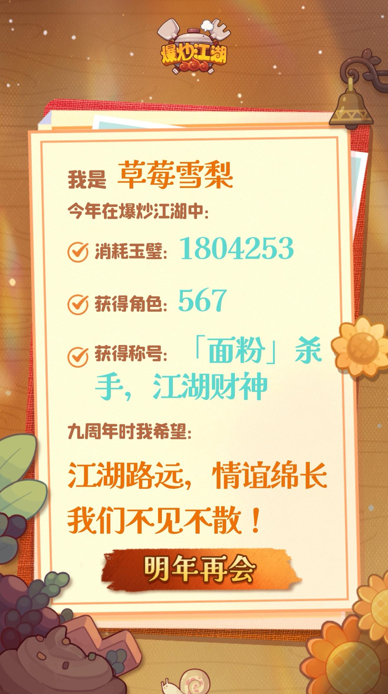 依稀记得去年小当家活动入坑不知不觉已经整整一年新的一年努力达成全典藏+全修炼同时希望爆炒能朝着九周年迈进#爆炒江湖 #爆炒江湖萌新