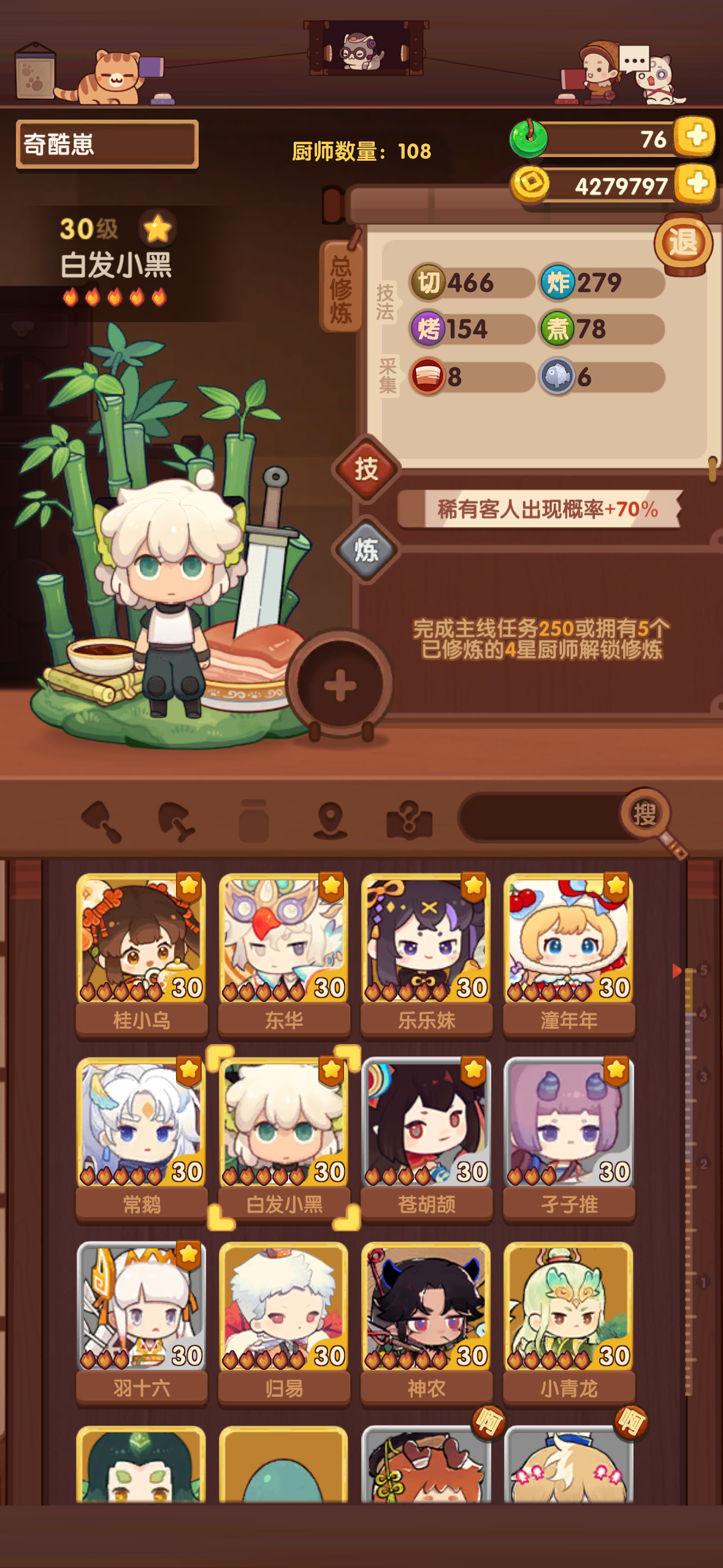 当一次伸手党,目前未修炼的四五星厨师有这些,求大佬们不吝指导,我应该先修炼哪几个厨师呢。感激不尽#爆炒江湖 #爆炒江湖厨师 #爆炒江湖萌新