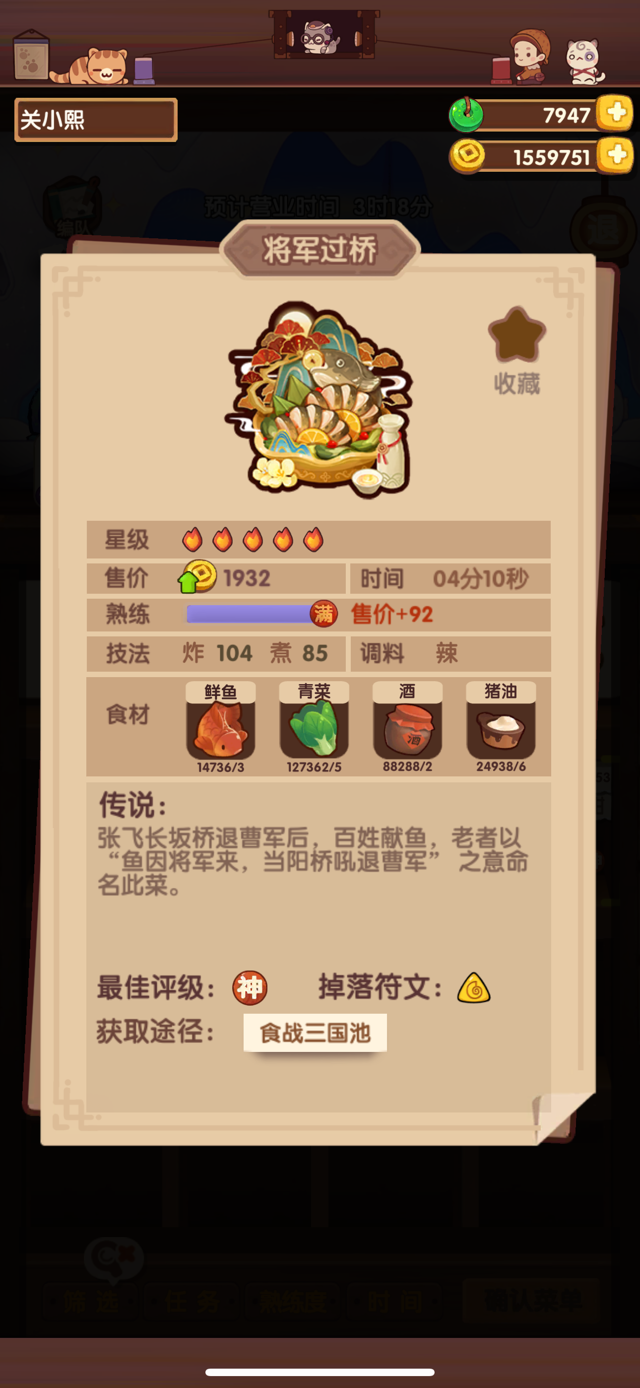 只需抽三个菜,5🔥:将军过桥(食战三国池)、得莫利炖鱼(双十一奖池)、五圆鸡(六周年奇石池)再加上厨具捣药罐(做限时任务经常给),就可以啦修完琳琅,一大波待修炼排队中ps:基修没细算,过得去就行#爆炒江湖 #爆炒江湖萌新
