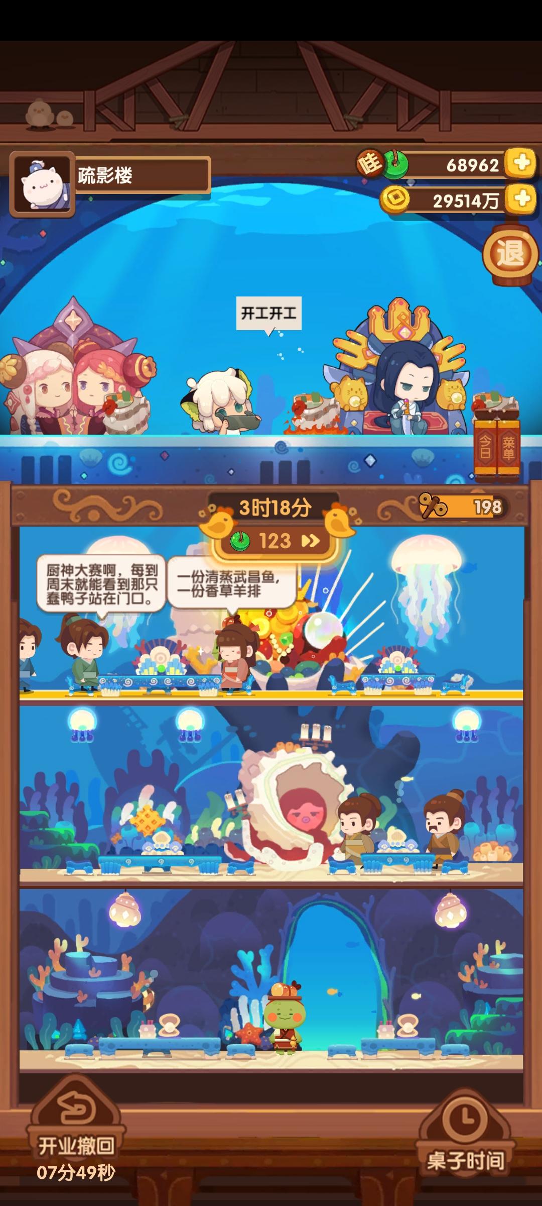 三楼桌子少一张,用了相近的,还不错。二楼水乡,小二还打伞。一楼水族馆。哈哈,那个河马还会动的。还有水母。(三楼和一楼都是夏日池,二楼是江南烟雨,桌子是刀剑。小二是江南烟雨还有碧池。)#爆炒装修大赛