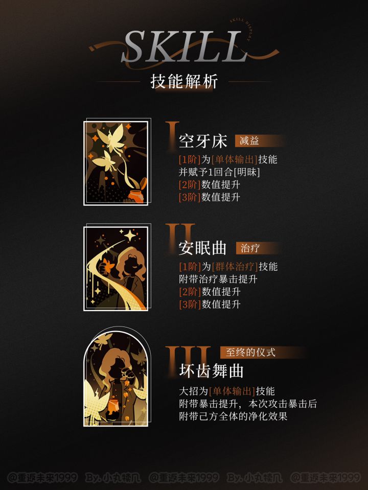 前言 鉴于之前在图文评论区编辑内容比较麻烦,于是考虑将楼里的内容摘出来单独发帖,当然主楼也会同步更新,请大家放心 主楼贴: 牙仙 星 精神创伤 我对牙仙的第一印象是一副“生人勿近”高冷知性的大姐姐,但在过完活性剧情之后,牙仙在我心中变得更加有“人味”,是一个很有人格魅力的立体角色。 牙仙的定位是具有治疗功能的暴击辅。暴击为主,治疗为辅,所以没必要单独把奶量拿出来和主流奶妈比较。 她的辅