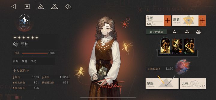 重返未来1999牙仙 角色养成攻略心相配队各位司辰们好呀,本期小丸又给大家带来【重返未来1999】的角色培养攻略啦~角色:牙仙 Tooth fairy星级:❇️❇️❇️❇️❇️❇️灵感:星创伤:精神创伤定位:治疗/削弱/净化 1⃣️角色定位2⃣️角色功能3⃣️洞悉材料4⃣️心相推荐5⃣️技能解析6⃣️使用技巧7⃣️抽取建议8⃣️配队思路9⃣️塑造建议等角度全