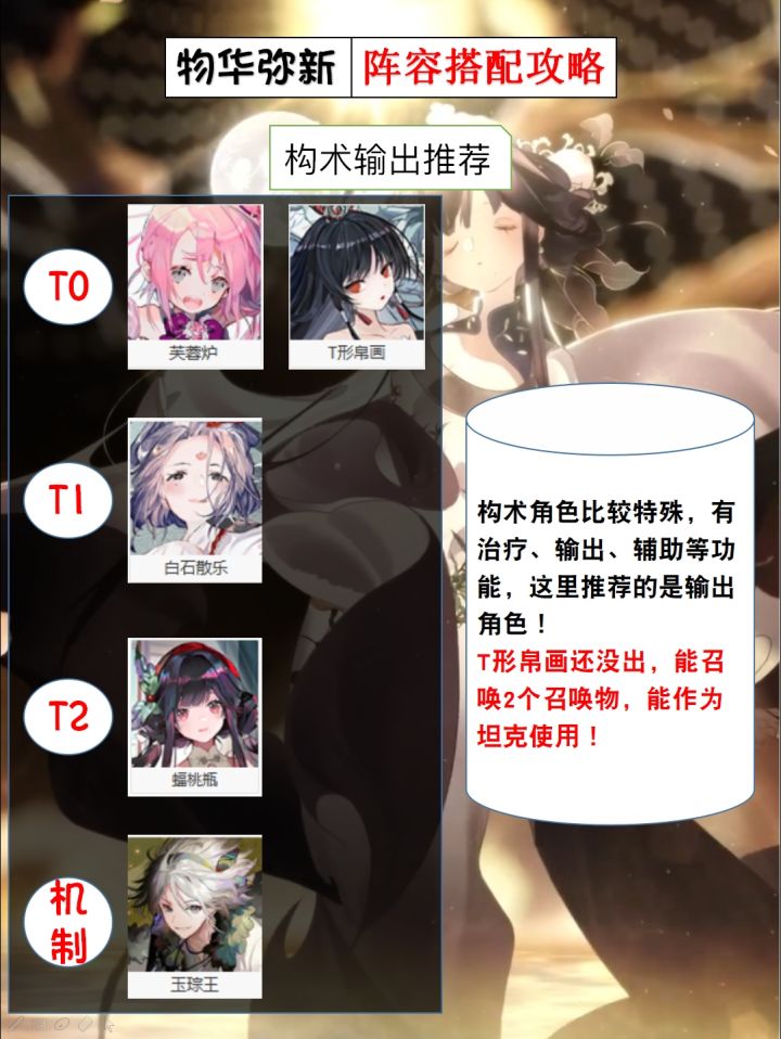 物华弥新新手入坑必看攻略!保姆级别的配队攻略,直接套公式即可!根据自己有的角色,每个职业都有开荒强度榜前期只要保证1坦克+1输出+1治疗即可,其他位置随便上!没有推荐的角色,则是不推荐培养的!大家可以优先培养图片有的角色!不明白的,可以在评论区留言!~4/23号修正:奶妈目前有个情况,长信宫灯后期很好用,排到了T0#攻略#物华弥新#物华弥新攻略#物华弥新攻略征集#物华弥新开服