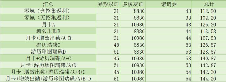 p2是总结p3是详细统计(标红为限定请调券)p4是官方福利图 ps:①试炼场、角色试用部分,可以根据个人情况进行删减②零氪不含召集返利统计在p2③月卡赠送的6彩珀未计算在内④兑换码截止日期在版本开始前,故不计入统计⑤月签到均为推算#物华弥新 #物华弥新创作者激励计划 #物华弥新抽数统计 #物华弥新攻略