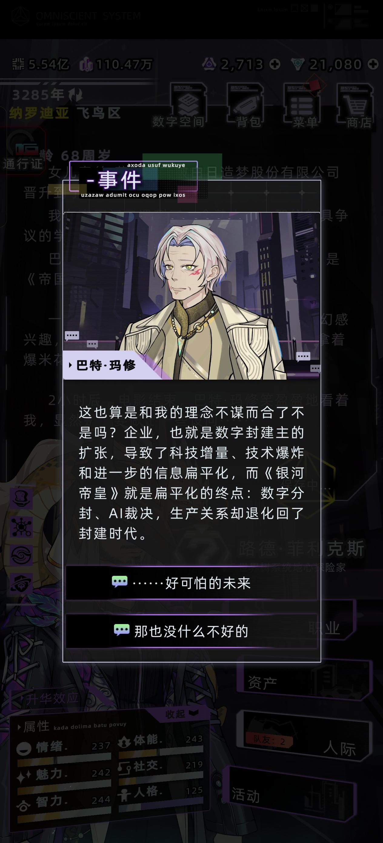 它让发达星际文明为什么还存在帝国主义和帝皇这个职位逻辑自洽了,于是他开始发文批判,他批判新封建:数字封建主义,然而却触动了某些人的人心,被驱离纳罗迪亚,我一个十级纳罗迪亚顶峰阶层世家看来还不够万氏、全知厉害,不然也能保下他。#未来人生 #特殊npc