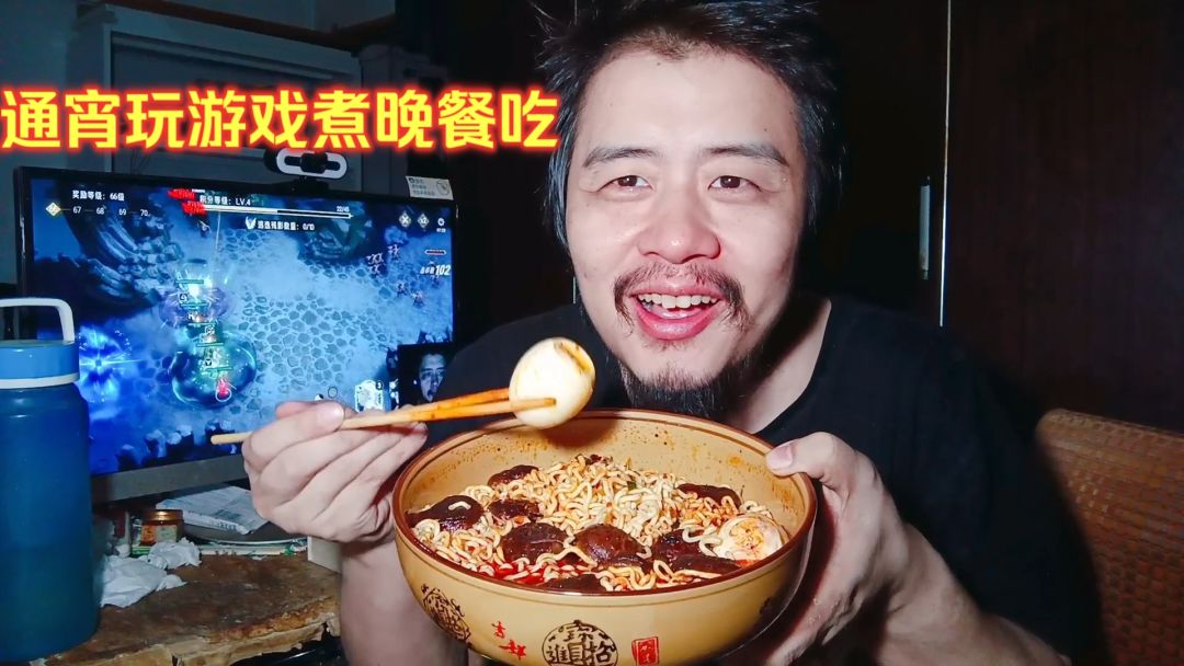 41岁宅男独居生活,通宵玩游戏煮晚餐吃,香菇鸡蛋麻辣方便面吃