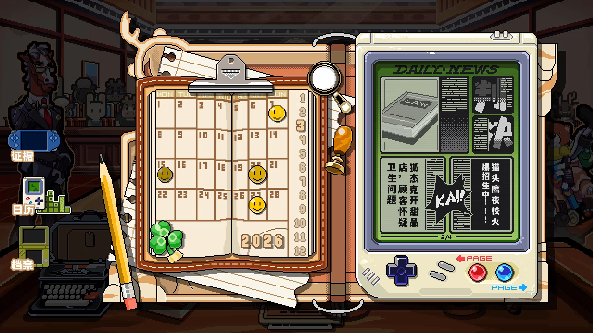 大家好啊!上次给大家看过了新闻界面的设计过程,那么这次展示一下实机画面![表情_酷] 左侧显示有新闻报道的日期,点击日期右侧会显示相应的新闻头条。 玩家可以根据这些新闻头条推导出与与案件关联的重要信息哦,是玩家重要的举证手段。 这个画面还有很多细节未来还会调整,大家有什么意见呢,欢迎沟通哦![表情_举手] #TapTap聚光灯独立游戏 #像素游戏推荐 #动物城大法官 #单机游戏 #发现好游戏 #