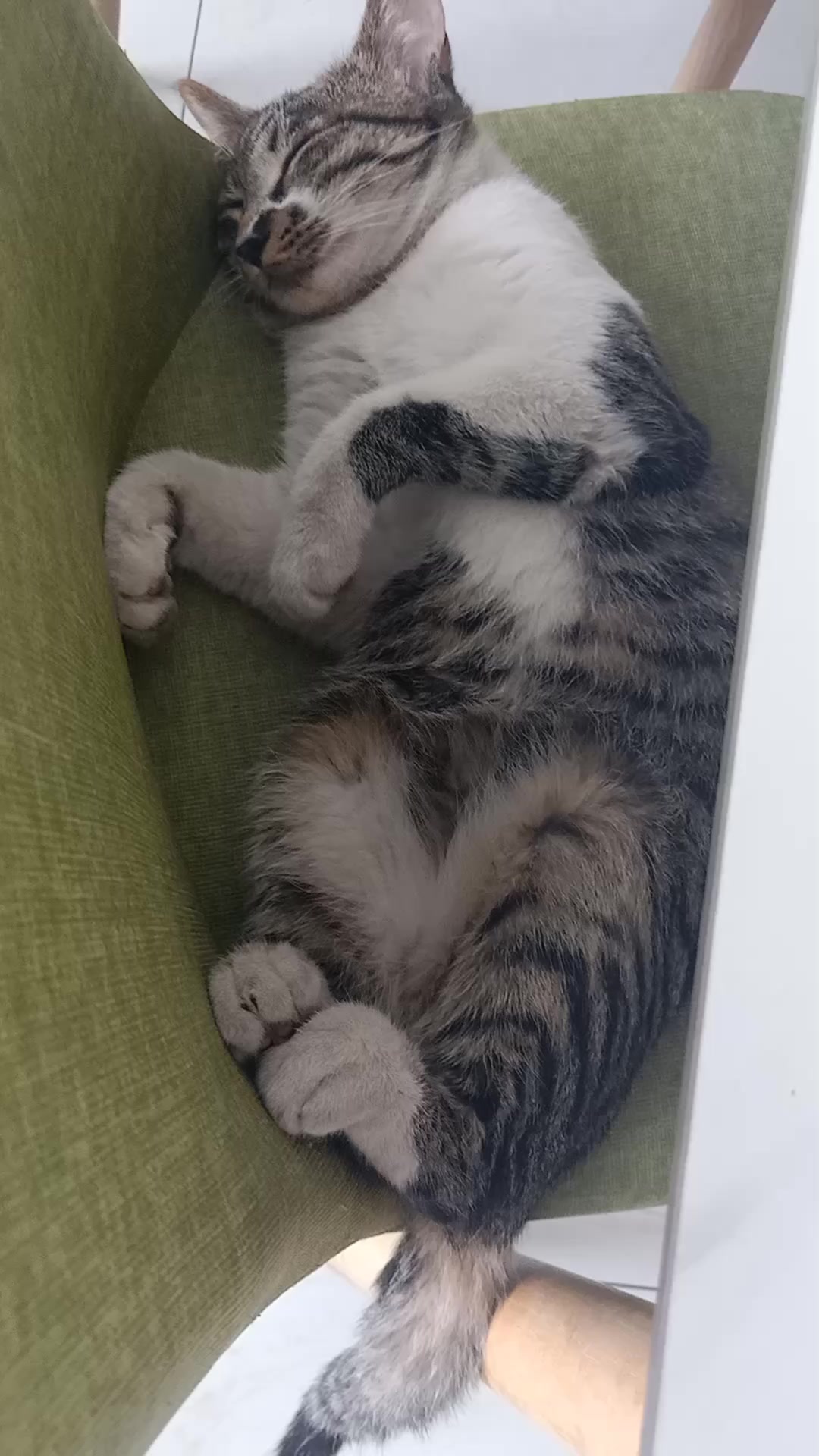 好可爱的狸花猫,阳光底下晒太阳,四脚朝天睡得真舒服。