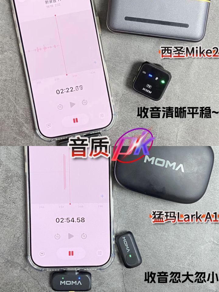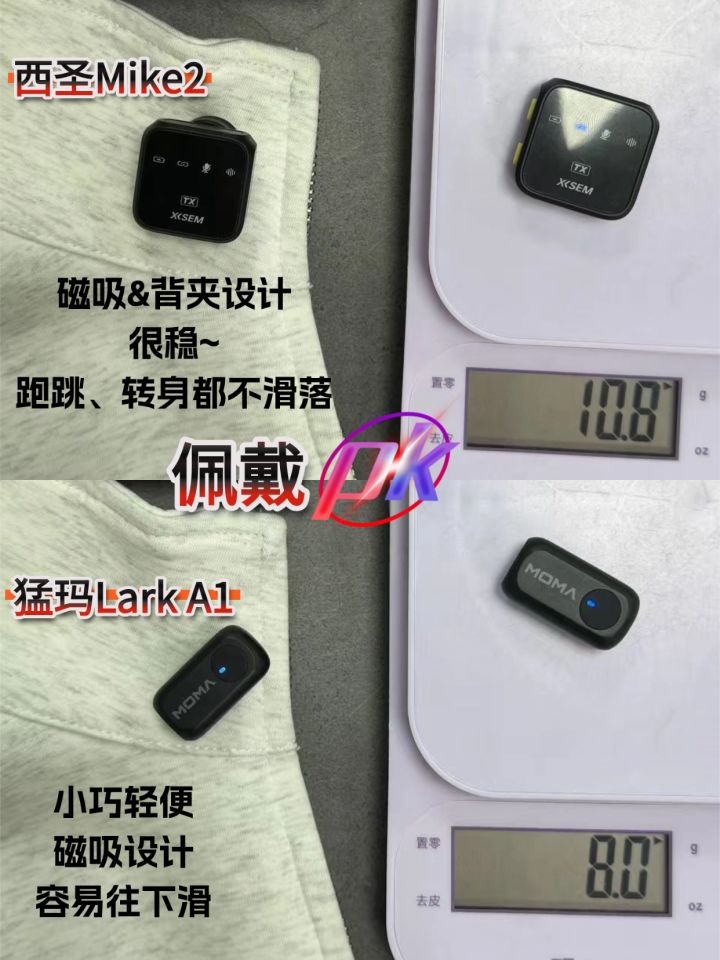 纠结了好久,终于把两款热门百元无线麦都拿下了!西圣Mike2和猛玛Lark A1实测一周,给新手宝子们掏心窝子对比,不吹不黑~ 🎙️音质降噪:嘈杂环境见真章室内安静场景下,两款麦的人声都还算清晰,但一到户外立马分出高下。 西圣Mike2在小吃街录vlog时,背景的叫卖声、车流声都能被压得很干净,人声依旧通透有质感,后期基本不用额外修音; 猛玛Lark A1一遇风噪和人群声就hold不住,录出