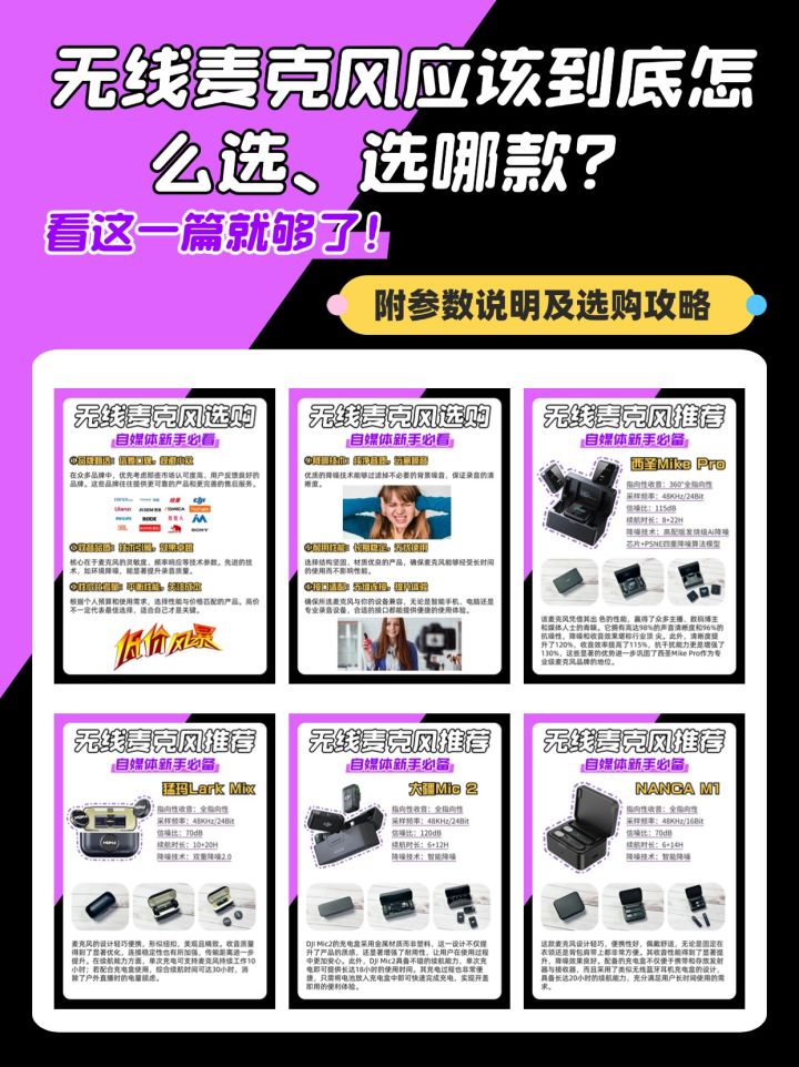 看好多朋友到现在了还不会选无线领夹麦克风,盲目跟风购买结果在使用时各种状况频出,真的不要再跟风了,有的无线领夹麦克风根本不满足自己的实际需求!选择无线领夹麦克风之前还是要做功课的,这样在录制、直播等场景下才能获得清晰稳定的收音效果。 关于如何正确选择无线领夹麦克风的功课已经给大家总结好了,还有不会选的可以参考一下哦~ ⛳️#西圣Mike Pro无线领夹麦克风 内容创作者的得力助手!收音效果超棒,