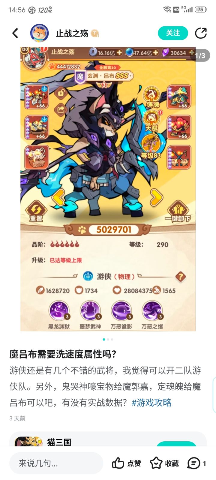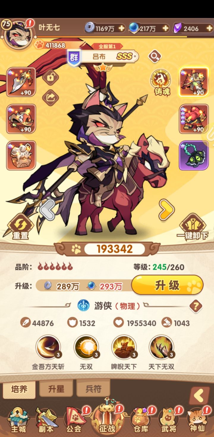 服务器:269服 角色名:凉丶笙一.引言: 1.本建议基于tap服,服务对象主要为新入坑猫三国的微氪玩家等需要规划自己有限的资源进行游戏的玩家。 2.本人游戏接近1个月,充值600多元,属于微氪玩家,根据自己游玩经验与大佬们经验交流,提供给新手前1个月游戏攻略,主要还是经验之谈,如有谬误或不当,欢迎指正和讨论。二.游戏攻略 1.tap服每天10点开新服,每5个区会进行合区,例如:261-
