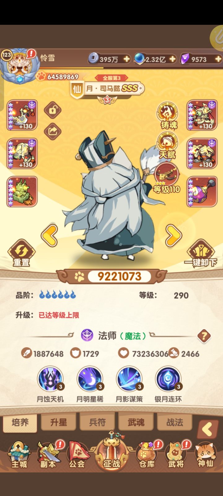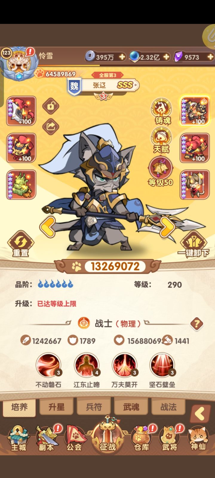 #猫三国周年庆 #猫三国武将仙诸葛亮:卧龙智冠三分世,忠魂辅汉照千秋。文鸳:骁勇冠三军,血战扬威震敌胆。月司马懿:鹰视狼顾谋天下,隐忍蛰伏定乾坤。张辽:威震逍遥津,戟破千军立孤名。仙诸葛亮还有机会返场咩