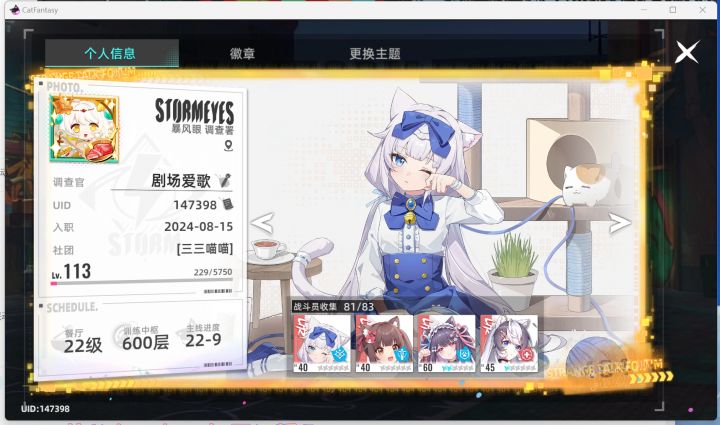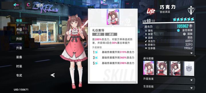 #猫之城X猫娘乐园联动 #猫之城NEKOPARA 猫友们好,我是新海市的剧场爱歌。牢猫终于是和猫娘乐园联动上了,写点这次联动的想法吧。先看看香草,香草是蓝色情绪的增益角色。虽然是第一个有发现机制的角色,但是拐量却很少,辅助强度不高。被动加暴击,随机buff的五选一爆伤,以及大招的加攻击都比较幽默,推荐抽图鉴或抽1星解锁1星效果玩玩,课佬拉满。再看看巧克力,巧克力是蓝色情绪的单攻角色。巧克力独