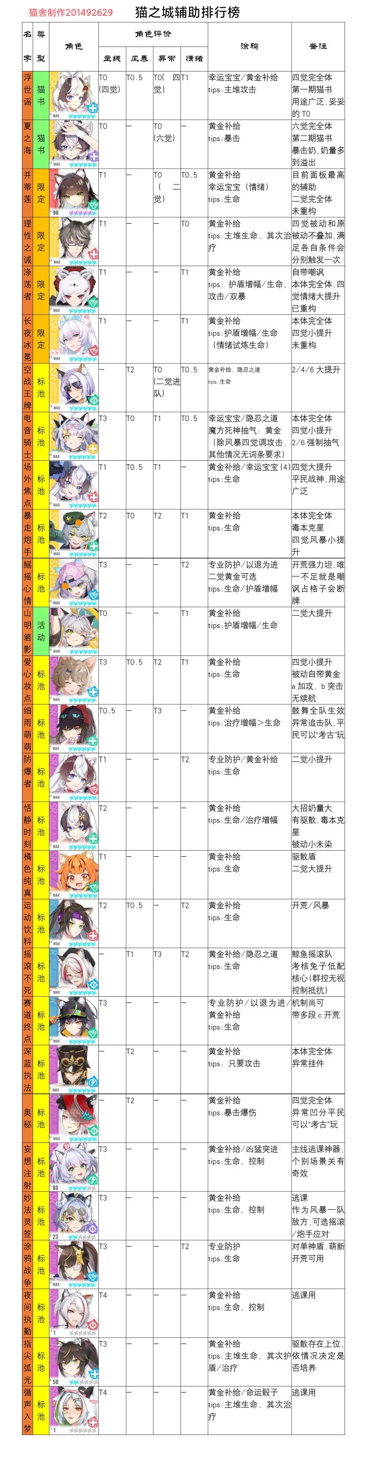 猫舍/猫之城交流群号:201492629猫舍捞人(同人绘画佬、cos佬、排版设计,文笔好的佬~)——————————————————————(此排行榜只统计了大部分辅助角色)——————————————————————#猫之城攻略#猫舍