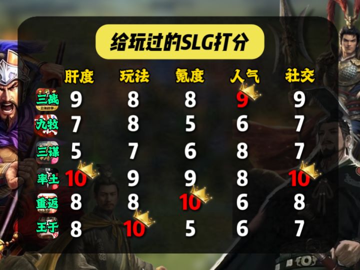 总有人觉得 SLG 是 “氪金者的游戏”,其实不过是没找对适配自己的款。 先说说SLG三国:谋定天下、率土之滨、三国志:战略版三款游戏。 《三国:谋定天下》平民首选,良心!每天 1 发免费抽 + 1 发半价抽,20 抽必出金将或战法;抽卡黄金免费渠道多,签到、开荒、打演武赛甚至更新补偿都能拿。就算你是低红阵容,靠 “克制关系 + 控场 + 战法发动率”,照样能打赢高红氪佬。(不