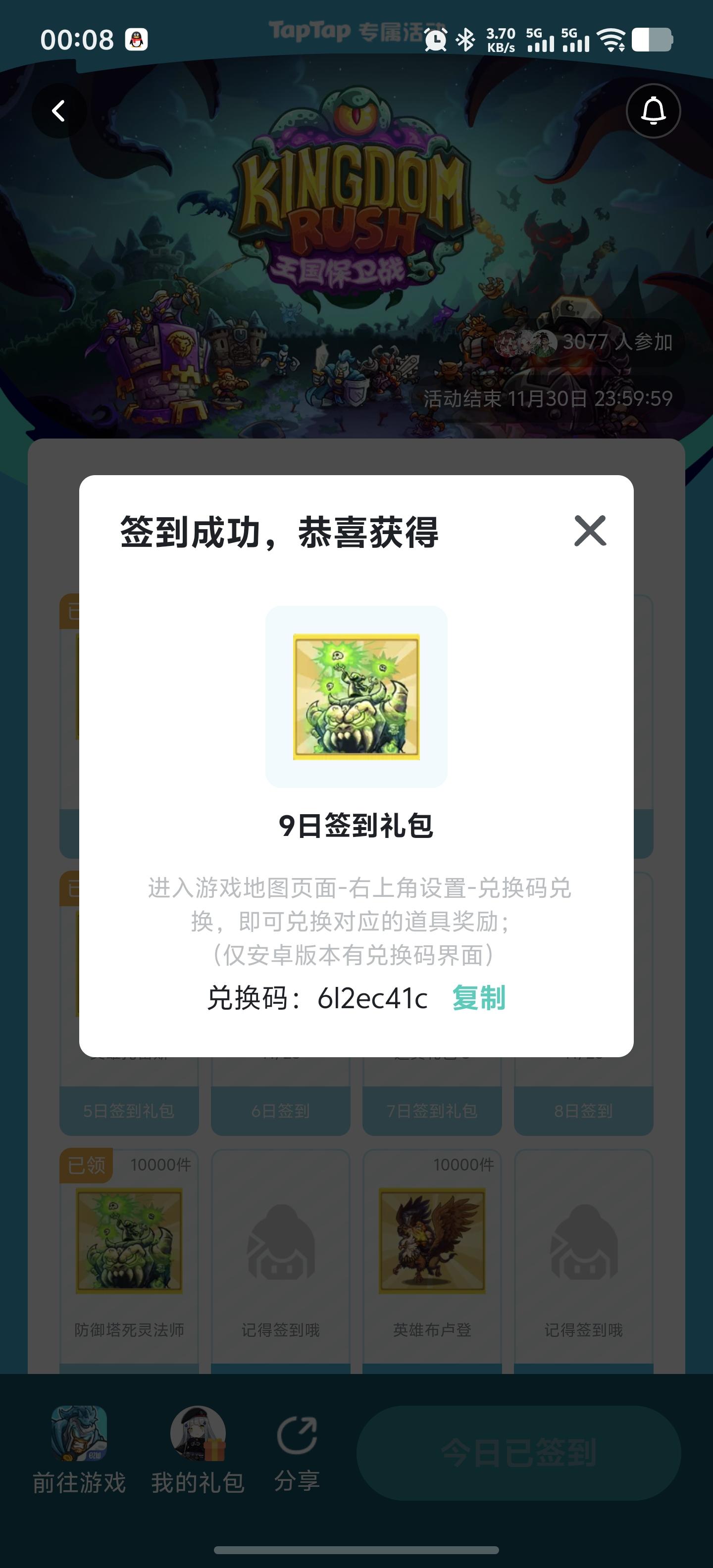 上次领了论坛别的大哥的,今天刚签到的,回馈论坛#王国保卫战5 #王国保卫战5联盟 #王国保卫战5公测