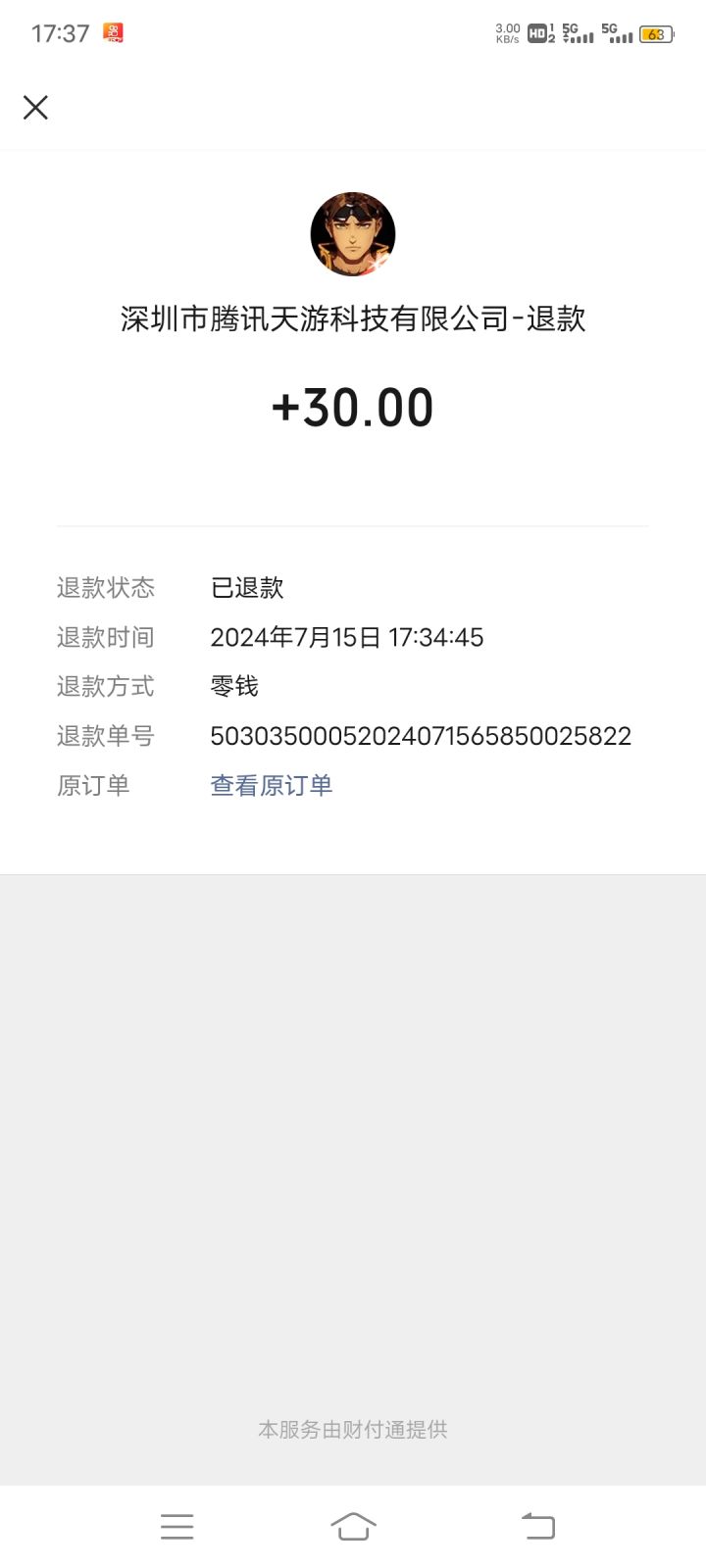 充值的钱原路退款了,诚不欺我,白嫖成功