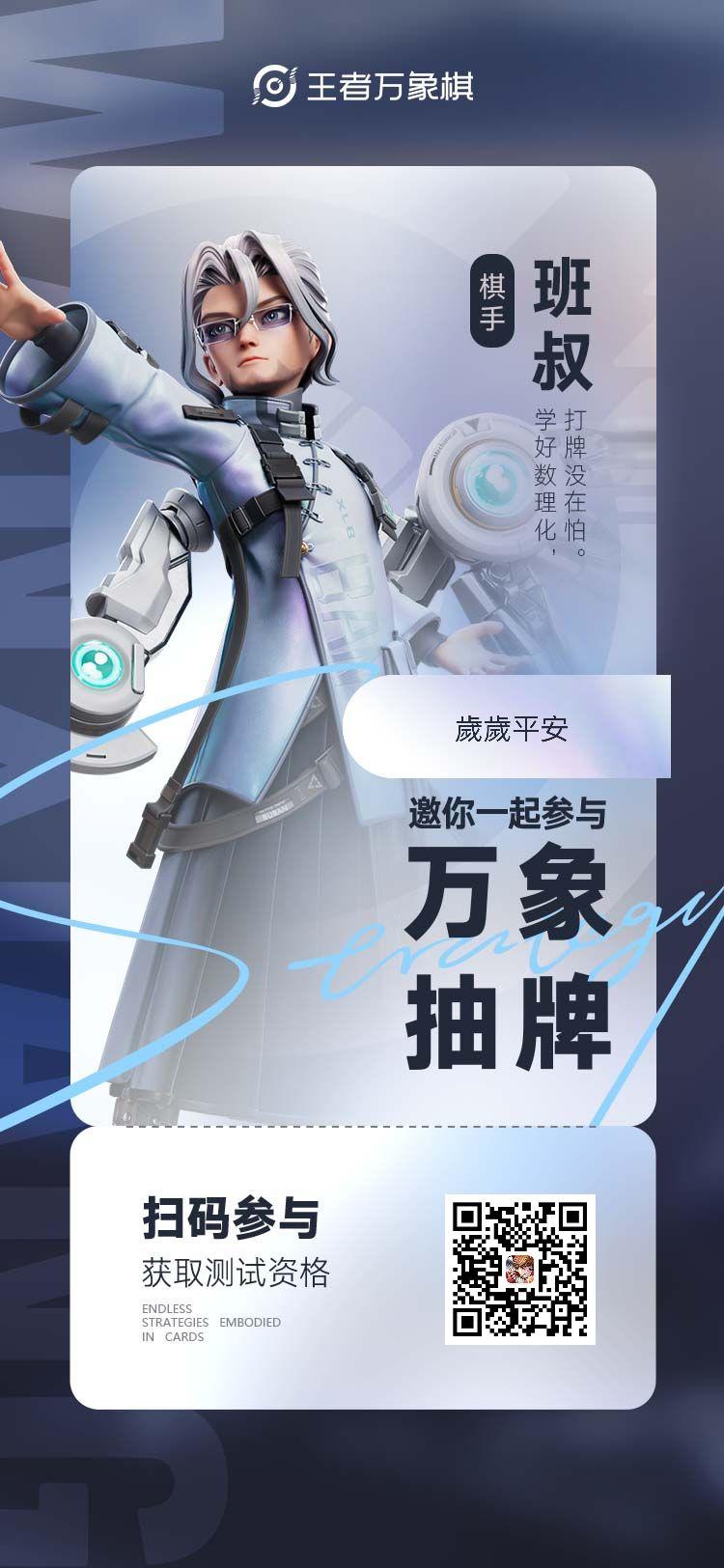 《王者万象棋》【冬季测试】于2025年12月4日正式开启招募了!本次测试为大规模非保密测试,小欧为大家整理了本次招募的资格获取指南。万象相聚,精彩无限!期待在万象之都与大家相遇!招募时间2025年12月4日开始,具体招募结束时间,以各资格发放平台时间为准。 测试信息测试类型:不计费删档测试,不开放付费功能,允许直播及录制内容测试时间:具体时间等待官方正式通知测试平台:安卓、桌面模