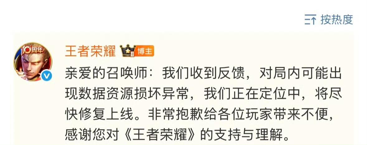 #今天游戏圈发生了啥 #资讯评论员 #王者荣耀 #王者数据资源损坏 就在国庆假期的最后一天,许多玩家玩王者荣耀时因数据资源损坏导致大量玩家无法登录或对局中断,系统误扣信誉分引发玩家们的不满,官方回应称正在修复,就在10月8号修复了对局损坏问题,未公布具体补偿方案,在此因资源损害导致的信誉分、排位星和巅峰分的扣除,受到以上影响导致的,将在两个工作日逐步恢复,这你感想吗再过十几天就是十周年庆了,此次