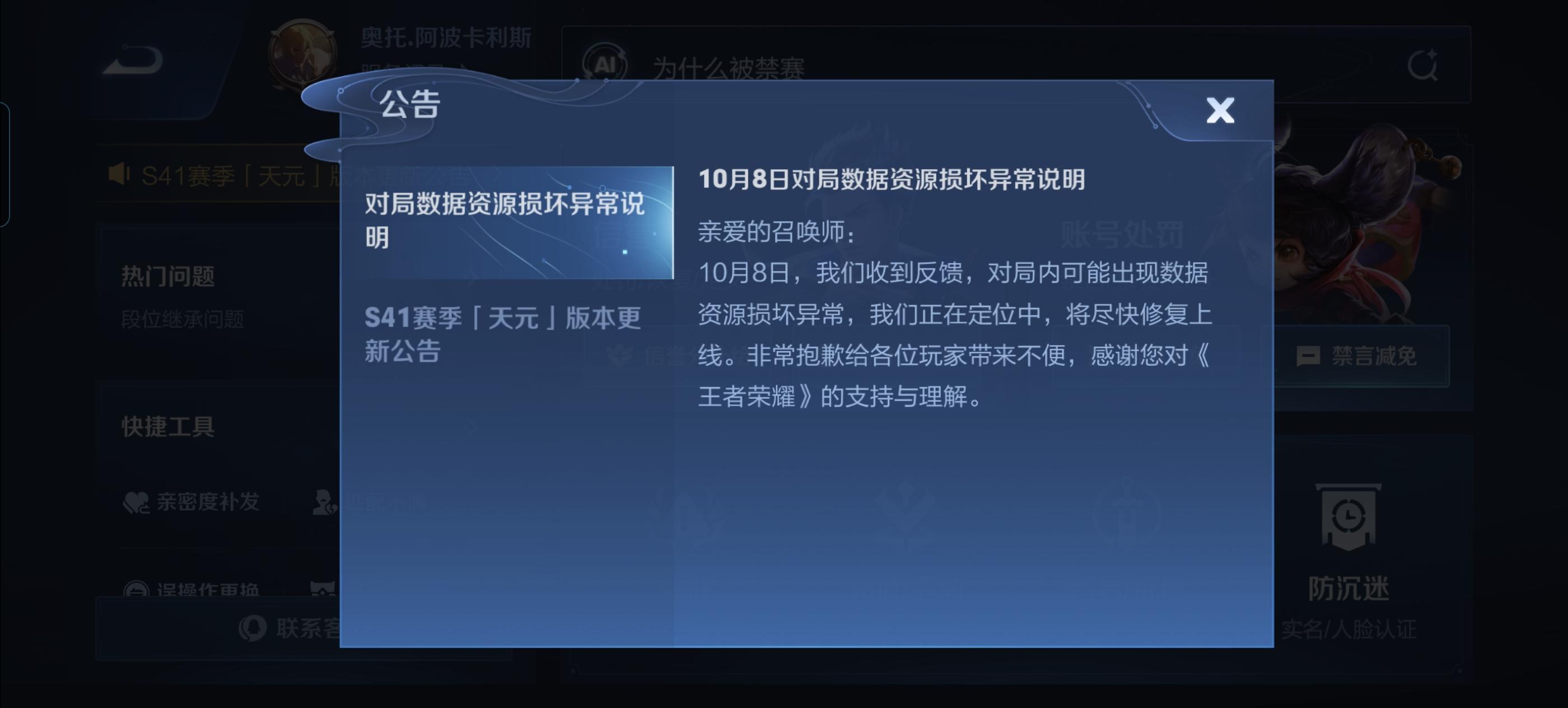 官方紧急修复并承诺恢复积分——内个,补我一个荣耀水晶可好?hhhhhNoticia | 文:yeah, but no | 09 oct 2025——10月8日正值国庆假期最后一天,当大量玩家准备抓住假期的尾巴再战几局时,《王者荣耀》却突然"崩"了。众多玩家宝宝在登录游戏时遭遇"数据资源损坏"异常,导致无法正常对局,甚至因此被扣除信誉分、排位星和巅峰积分,相关话题迅速冲上热搜引发热议。>