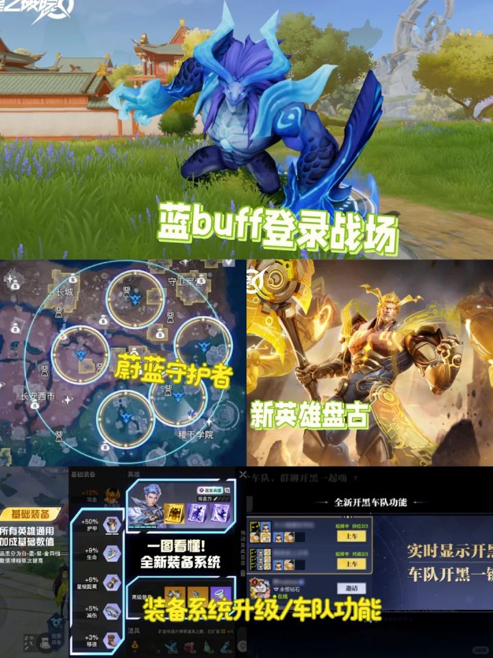1️⃣3D版本的蓝buff好大一只,建议破晓出一个捕捉功能,直接抓起来蓝buff是中立野怪,地图中的标志就是它的所在地,击败后可以获得buff和物资 2️⃣新英雄盘古上线,最近好多王者英雄陆续加入破晓星魂战场,开天辟地万物新生,近战英雄盘古大帝降临!我嘞个开天辟地直接把野怪劈成灰 3️⃣装备系统开始向王者发展,主要分为三部分:基础装备,高级装备,技能书神装在手五杀我有 4️⃣车队功能和王者一样,一