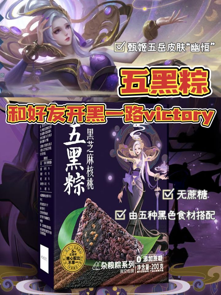马上端午节啦🍃思念居然和王者荣耀联动啦 推出了“开黑”粽子 咱就是说 这带着㊗️福的粽子 峡谷人狠狠需要😎〰️〰️〰️1️⃣五黑粽封面是甄姬五岳主题皮肤“幽恒” 粽子由五种黑色食材搭配 馅料还有颗粒饱满的核桃 🈚️蔗糖 不爱吃甜星人冲 吃了这粽子 和好友五排开黑一路victory🫡〰️〰️〰️2️⃣五红棕封面是韩信五岳主题皮肤“飞衡” 粽子由五种红色食材搭配 馅料融入了怎么搭配都不会出