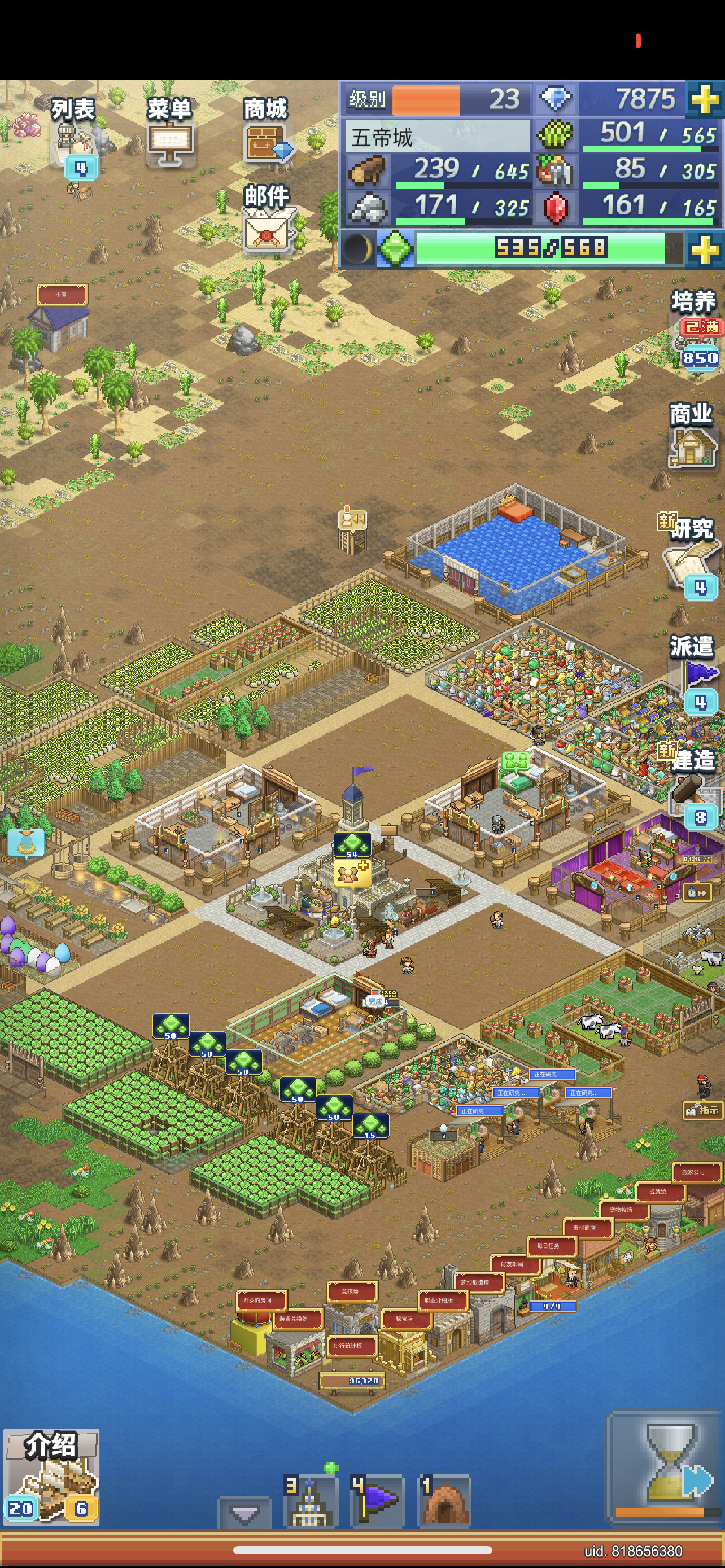 玩了快两个月了,把地图都探开之后接下去不知道玩什么了,于是发了这个帖子求教一下各路大佬1.我看魔物图鉴有那种千级地图才会刷的怪物,可为什么我探不到这种图,是和主城数量有关吗?(我目前只有一个城,第二城老是被打干脆拆了)2.主城建的越多,收益就越大吗?3.开店的店面是用特大宅邸还是大宅邸为宜?能增加床位入驻同等工人来加快出商品的速度吗?4.欢乐使者的住宅有什么特别作用吗?5.调查队需要s级
