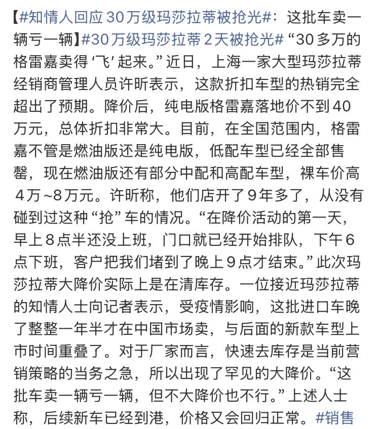 三十万级的玛莎拉蒂被抢光,还是有钱人多