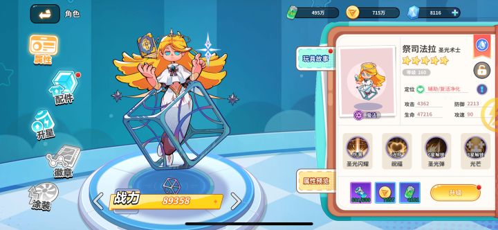 体验心得割草战斗别具一格、塔防、横版过关等多种玩法,同时融入了放置挂机机制,让玩家可以在忙碌时离线自动成长仿佛修仙游戏玩家可以通过选择不同玩具角色和搭配配件来打造个性化的玩具团队,游戏的多样性好。角色测评 木村忍者:高机动性和强大输出能力,技能多样,适合快速切入战场输出。 舞狮莱恩:火属性核心输出角色,大招伤害高,但容易被集火,适合搭配聚怪角色。 八戒:水属性坦克角色,被动技能提供全队