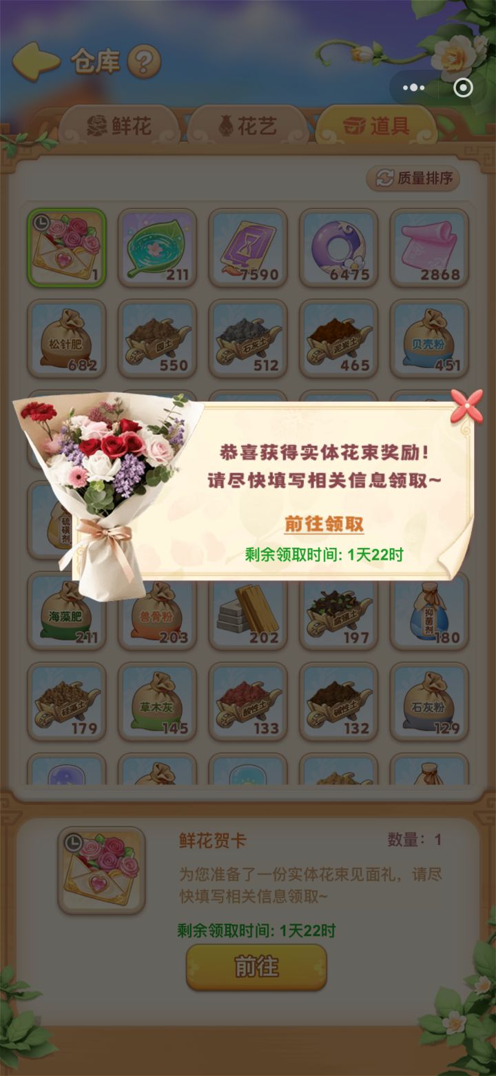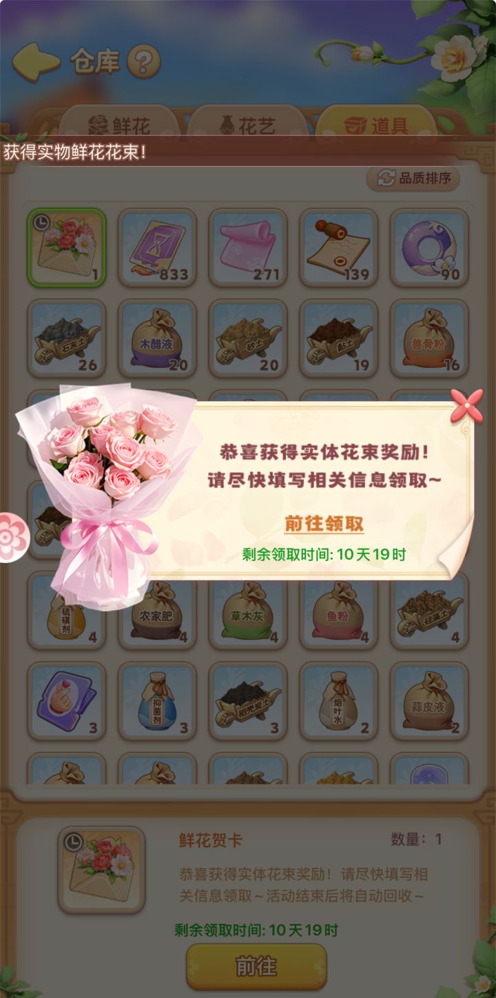 真的收到啦~开心🥳 #我的花园世界手游 #玩花园世界赢真实花束 #我的花园世界公测