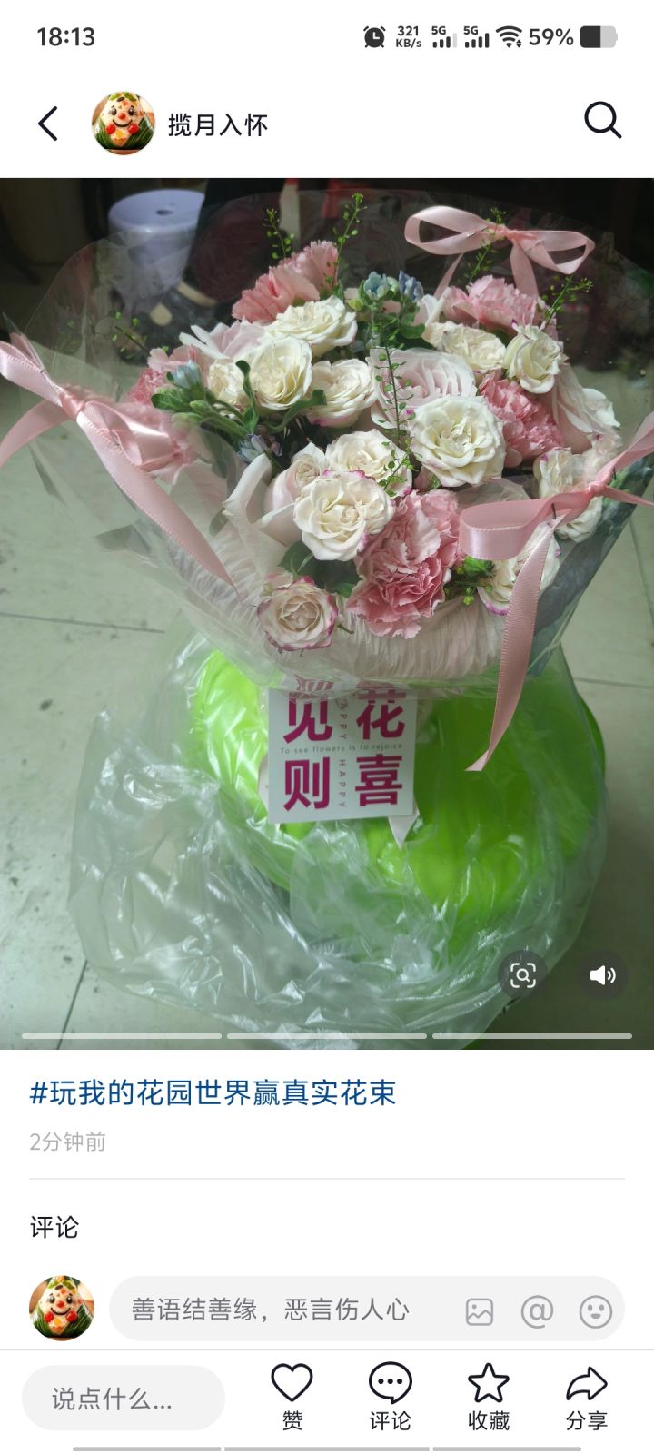 抱着试一试的态度玩的,没想到真的拿到了,花很好看,游戏也很好玩#玩花园世界赢真实花束 #我的花园世界公测
