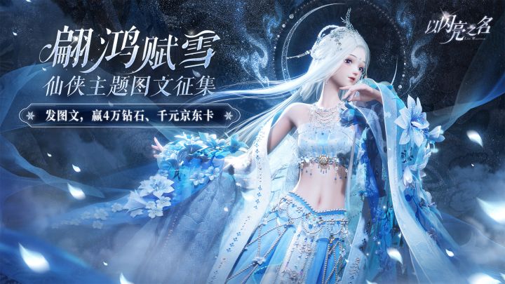 《以闪亮之名》全新版本·浮世雪舞上线。翩鸿赋雪,雪月风花,各位合伙人是否已身处仙境当中?请晒出你一眼惊鸿的仙侠风搭配吧。站内发布图文参与#玩转以闪仙侠风穿搭#活动,4万游戏钻石、千元京东卡掉落!出片仙人(20名):2000钻石+200元京东卡2023年6月15日~7月14日内容主题>以「仙侠风」为主题,晒出你在《以闪亮之名》的穿搭、捏脸、COS、染色、家园、绘画等等。投稿方法>方法1