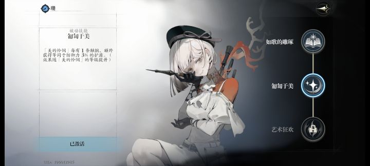 角色介绍:珊是一位深海的可输出的防御型角色属性:有着很高三围(主要防御)属性面板上和其他人大差不差,12%的死亡抵抗基本上还用不上。哪怕配混沌也只是112%的死亡抵抗(可以说是个添头属性)。技能:打击(回能,可删)防御(回能,不建议删,配合觉醒)觉醒(回能,输出必备,看地图觉醒资源,考虑是否优先觉醒)美的怜悯(大盾加触手,额外效果:启灵·匍匐于美)封闭创作:(去虚弱+延迟大盾,额