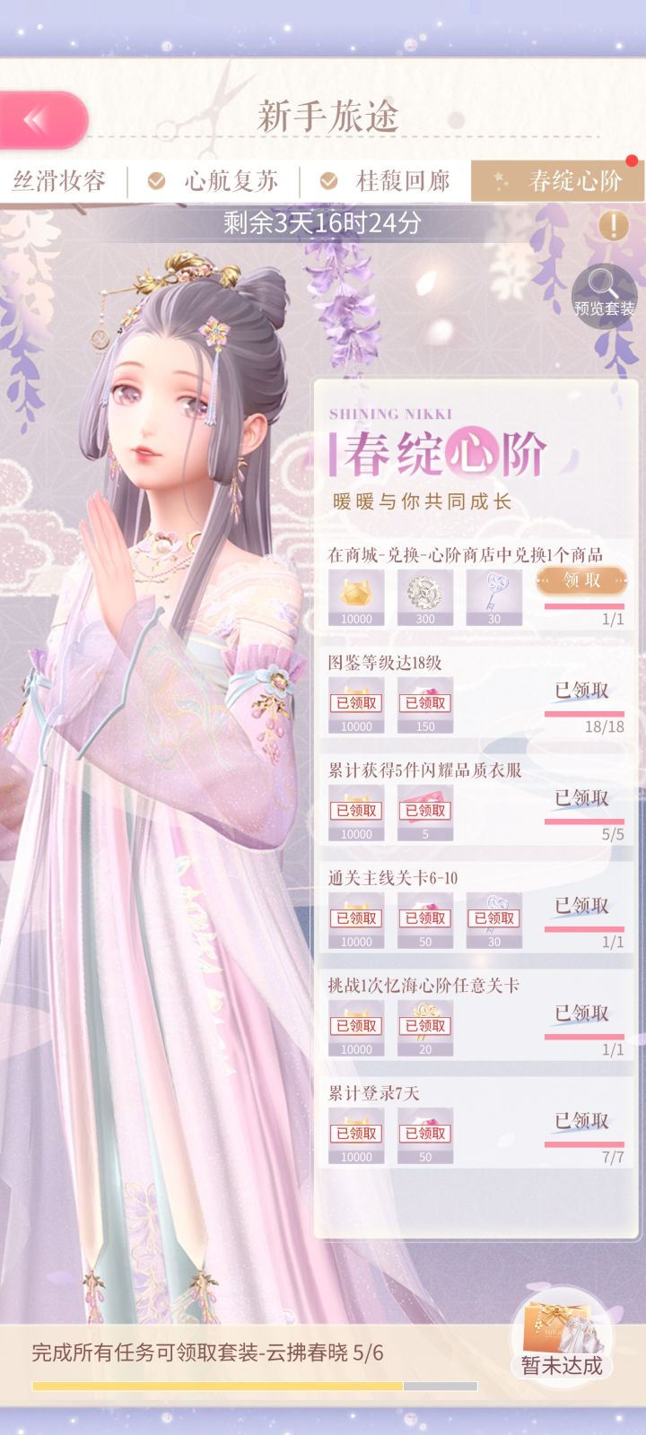 新手旅途还剩三天,终于把衣服“春绽心阶”搞到了。太难了,哭哭,天杀的。对于萌新来说,功能特别的多,然后还是有很多地方都没搞明白。#闪耀暖暖周年庆 #闪耀暖暖穿搭 #闪耀暖暖 #甜甜的闪耀暖暖 #闪耀暖暖周年庆 #闪耀暖暖新手