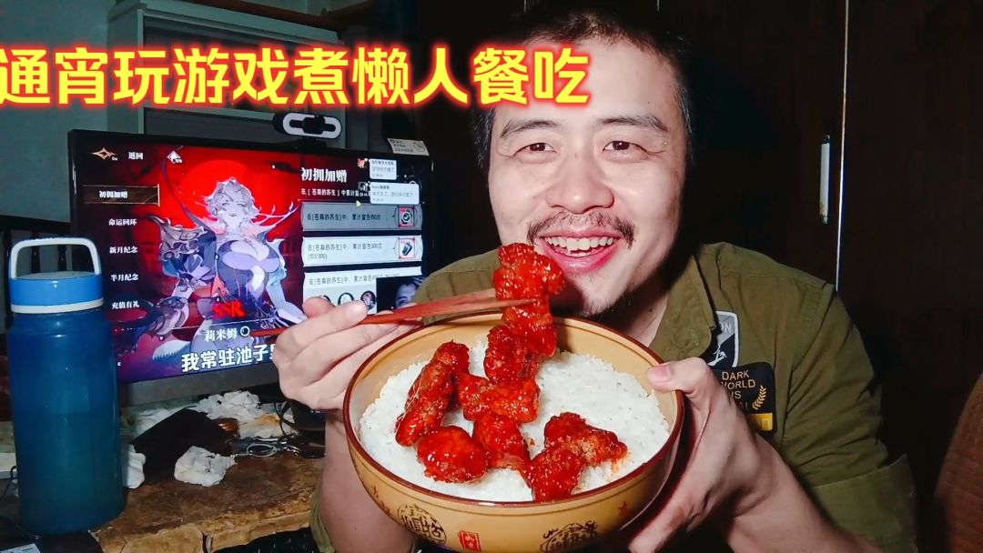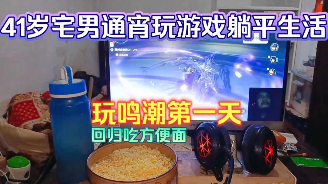 41岁宅男通宵玩游戏躺平生活,玩鸣潮第一天回归吃方便面午餐5元