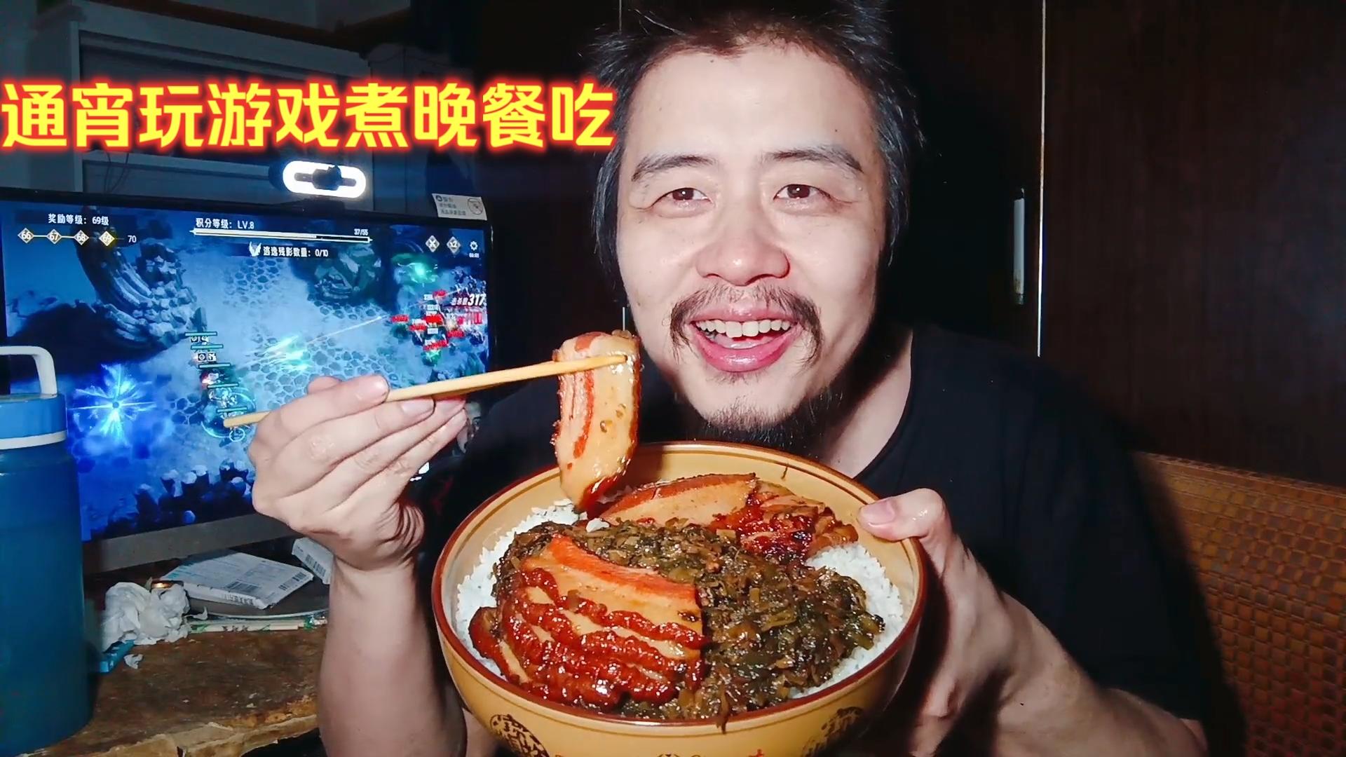 41岁宅男独居生活,通宵玩游戏煮晚餐吃,梅菜扣肉搭配米饭吃舒服