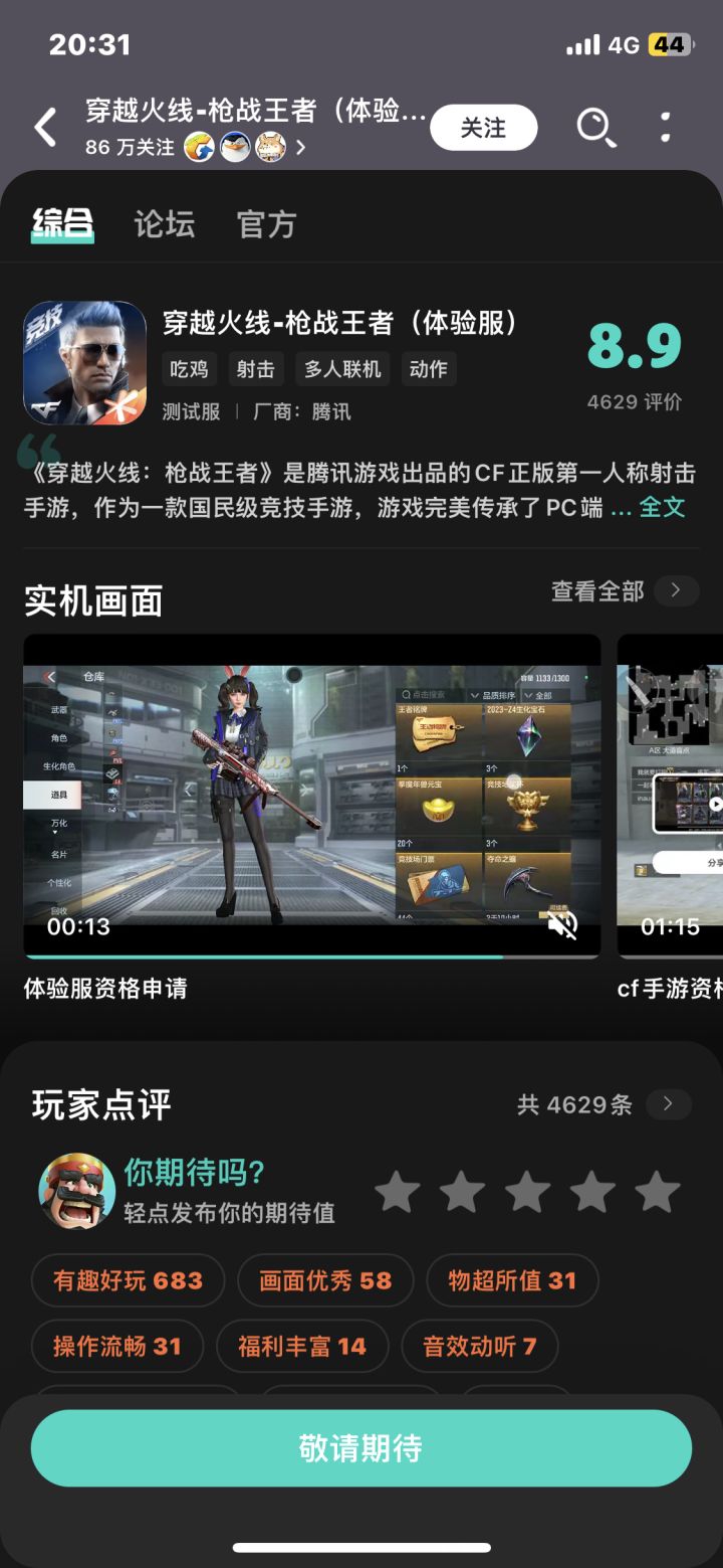 诚挚申请穿越火线体验服资格