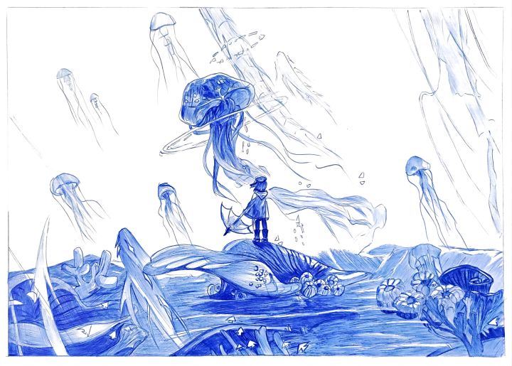 临摹一张水月肉鸽,背景不会画就开摆了圆珠笔也不好画细节,省了很多细节(就是菜)奉上扫描图#水月与深蓝之树#画画