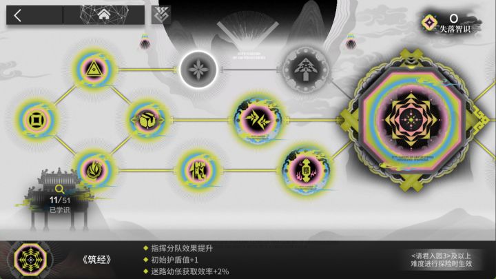 #明日方舟镜中集 #明日方舟 #集成战略 #界园 首先你需要先通关到难度3。然后去被动那边快速把右边那个最大的节点解锁了。这样指挥分队获得强化,多了时光之末,也就是失败继续的机会。最后直接选难度3开一把,找第二个节点不是战斗的,第一个节点一进去就退出,反正有时光之末不会失败。然后直奔商店投钱。点的快的大约1分钟一把。如果最后想稍微获得一点等级经验的话,再把后面的残识地图进去然后进去第二层。