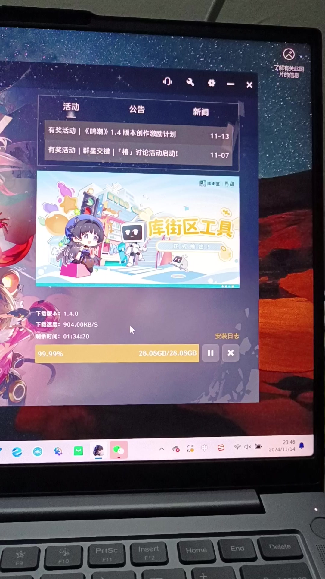 如题,我在给我的鸣潮更新,但它一直在100%和99.9%徘徊。啊?库洛你给我整这出?(ᇂ_ᇂ|||)#鸣潮 #疑似bug #