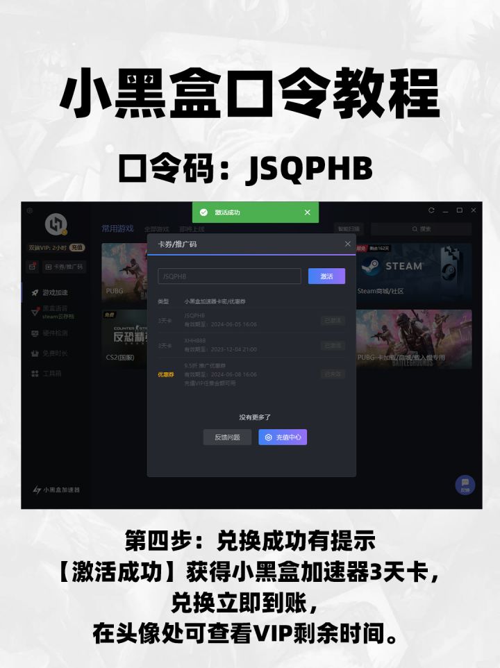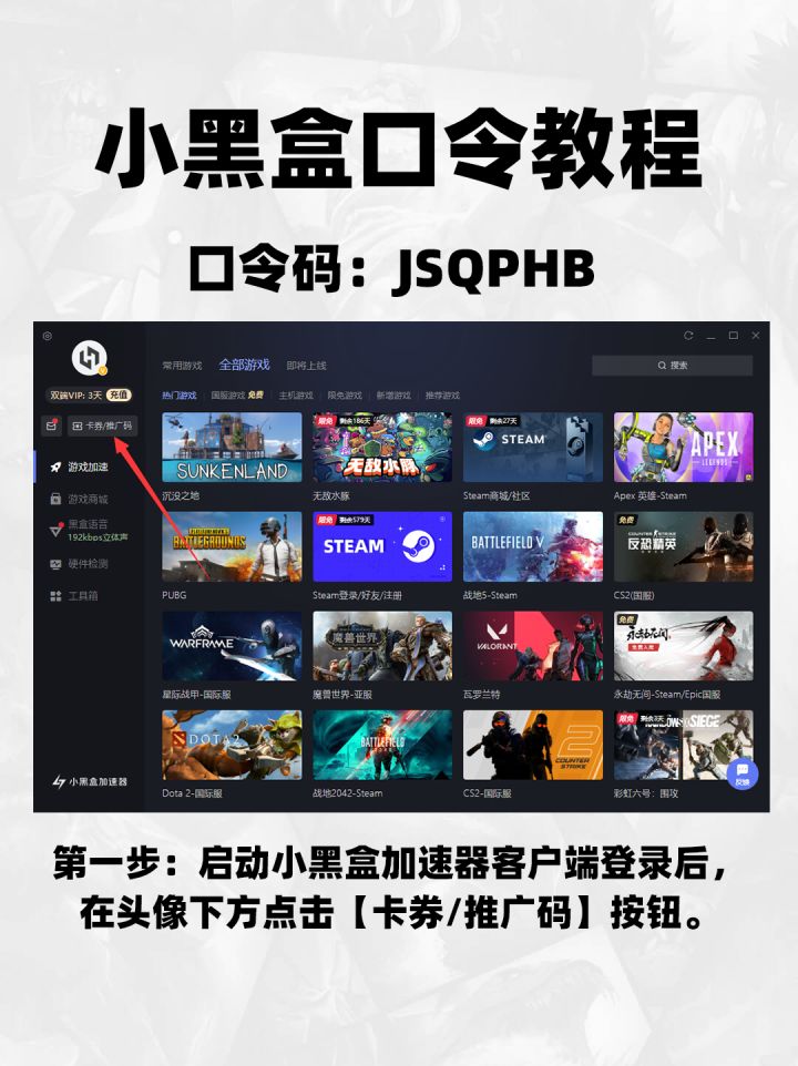 🎮宝子们!小黑盒加速器兑换码来啦!JSQPHB,输入就能免费领72小时加速时长!一键智能选线,低延迟不卡顿,热门游戏全支持,快冲!💨 #steam游戏 #游戏党必备 #白嫖党狂喜 #游戏日常 #steam