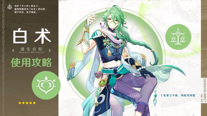 UID:152901193·【前言】· 大家好,这里是你们的姜姜欧巴!这次带来了《白术的角色使用攻略》。一如既往,以下内容为自己个人见解,若有错误请各位及时纠错,若有缺失,劳烦及时补充,欢迎各位热情讨论!先行五体投地大礼表示感谢! PS:以下内容,A=普攻;E=元素战技;Q=元素爆发。1命=命之座第1层(以此类推)。=目录=1、【角色介绍】2、【天赋介绍】3、【命之座介绍】4