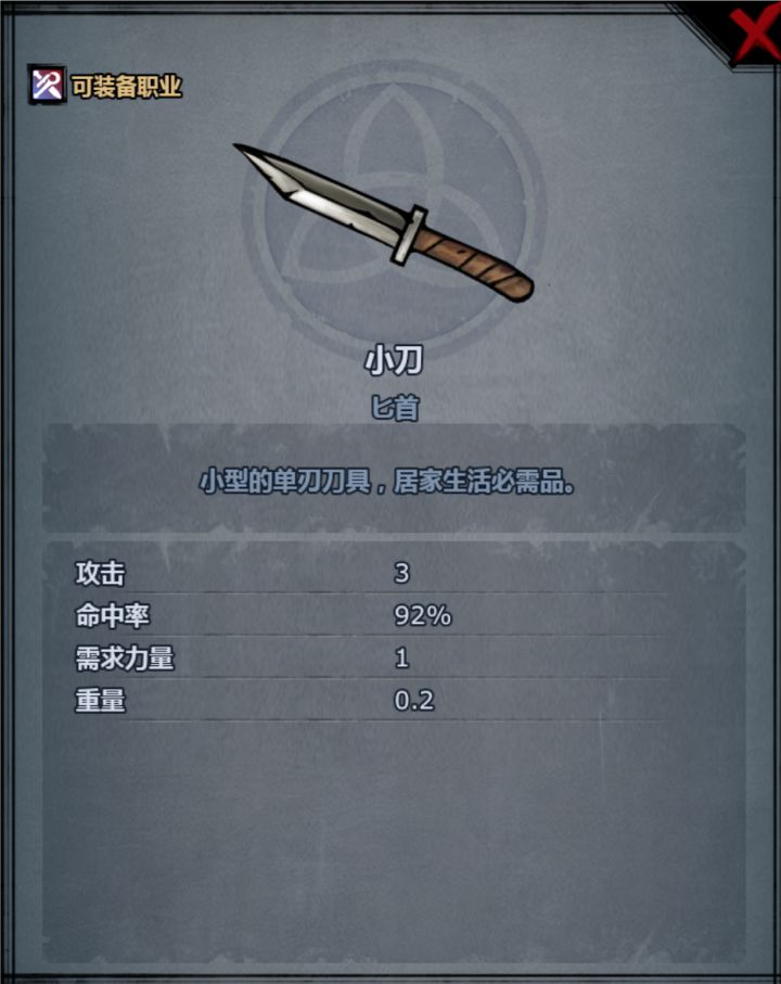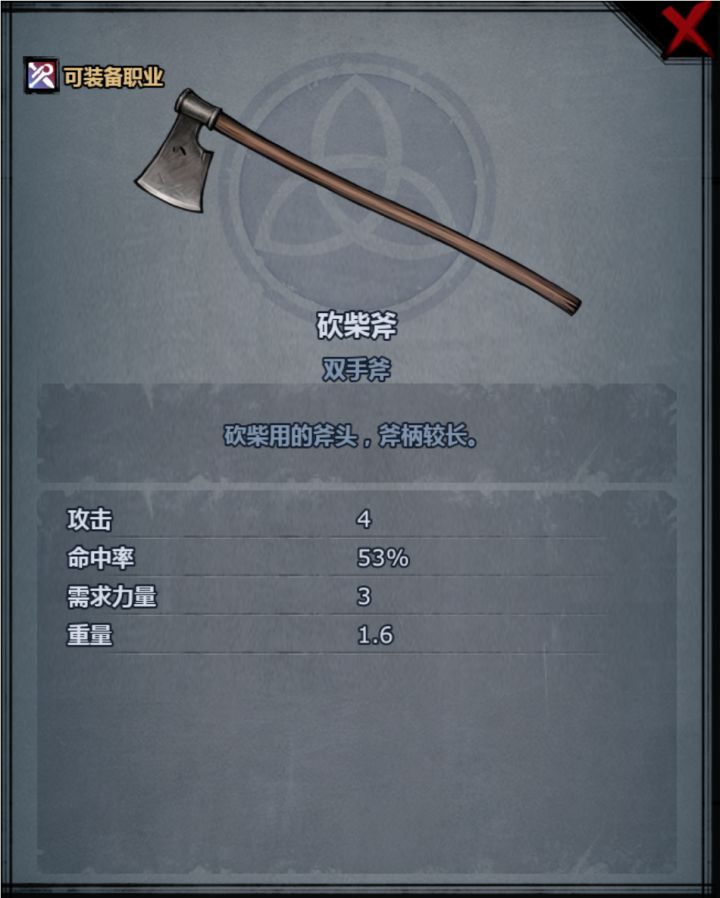 作为山川之父的索弗利夫,在加尔提兰留下了许多神兵利器,为了探求武器的下限,寻找出加尔提兰最次的装备,胡萝卜佣兵团在🥕🐭的支持下举办了索弗利夫之耻的评比活动。本次比赛共有5名参赛选手,它们来自于荒塔村4杰,是每位玩家最早获得的武器。第一位,砍柴斧作为主角开局持有的武器,砍柴斧拥有4点的高额攻击力,53%的不俗命中率,但缺点也很明显,高达3点的力量需求和1.6的重量,以及需要占用主副手两个装备栏
