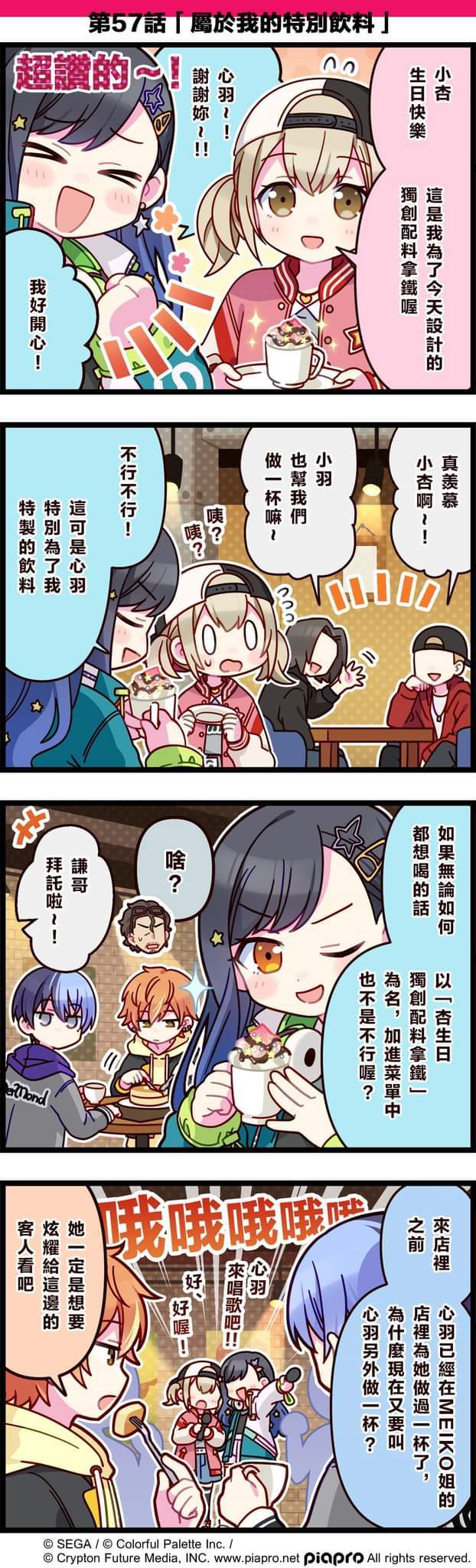 【「世界」劇場 四格漫畫】 尊敬的各位居民: 今日是關於白石杏的小故事~ 同時,今天也是她的生日💕 讓我們一起來祝白石杏生日快樂吧~ 第57話「屬於我的特別飲料」 #pjsk#世界计划#白石杏#白石杏生日快乐