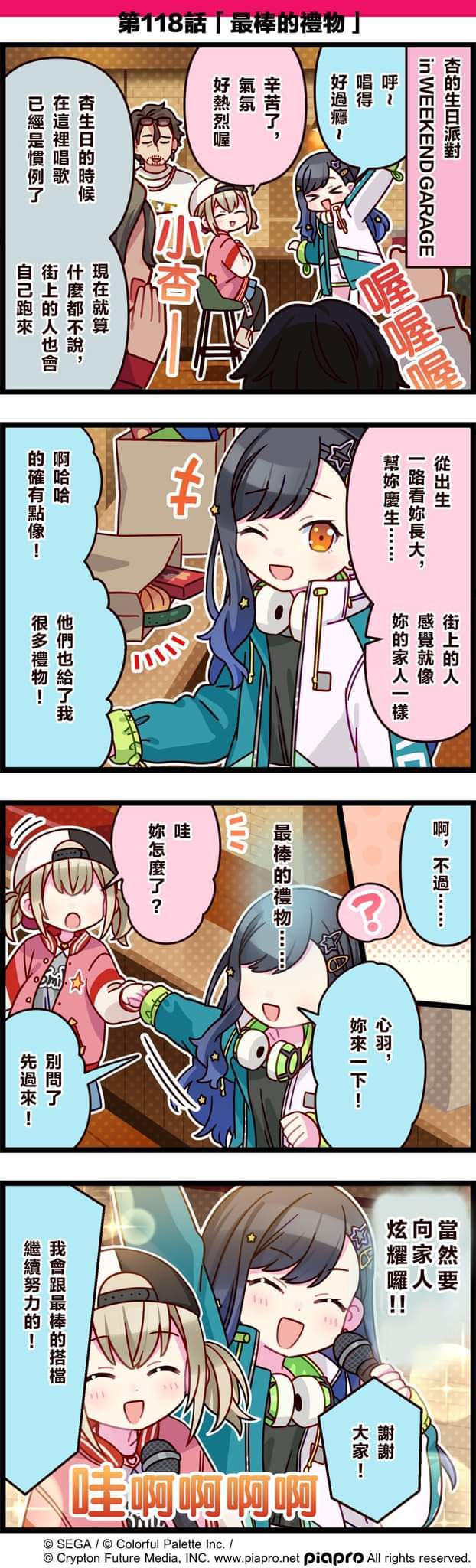 【「世界」劇場 四格漫畫】 尊敬的各位居民: 今天7/26是 Vivid BAD SQUAD成員「白石杏」的生日!🍰 來看看關於白石杏的小故事吧~ 第118話「最棒的禮物」🎁 #pjsk #世界计划 #白石杏 #小豆泽心羽