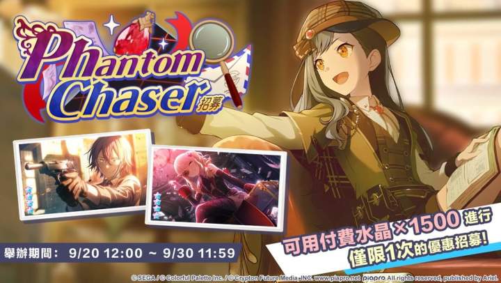 【「Phantom Chaser招募」正在進行中~】 尊敬的各位居民:9/20 12:00起舉辦「Phantom Chaser招募」🎉本次將有新的★4成員登場唷~還有限定1次的優惠招募,只需 付費水晶×1500 就可以進行一次十連招募!快去《世界計畫》與喜愛的成員相遇吧💕 【活動期間】 9/20 12:00 ~ 9/30 11:59 「Phantom Chaser招募」中